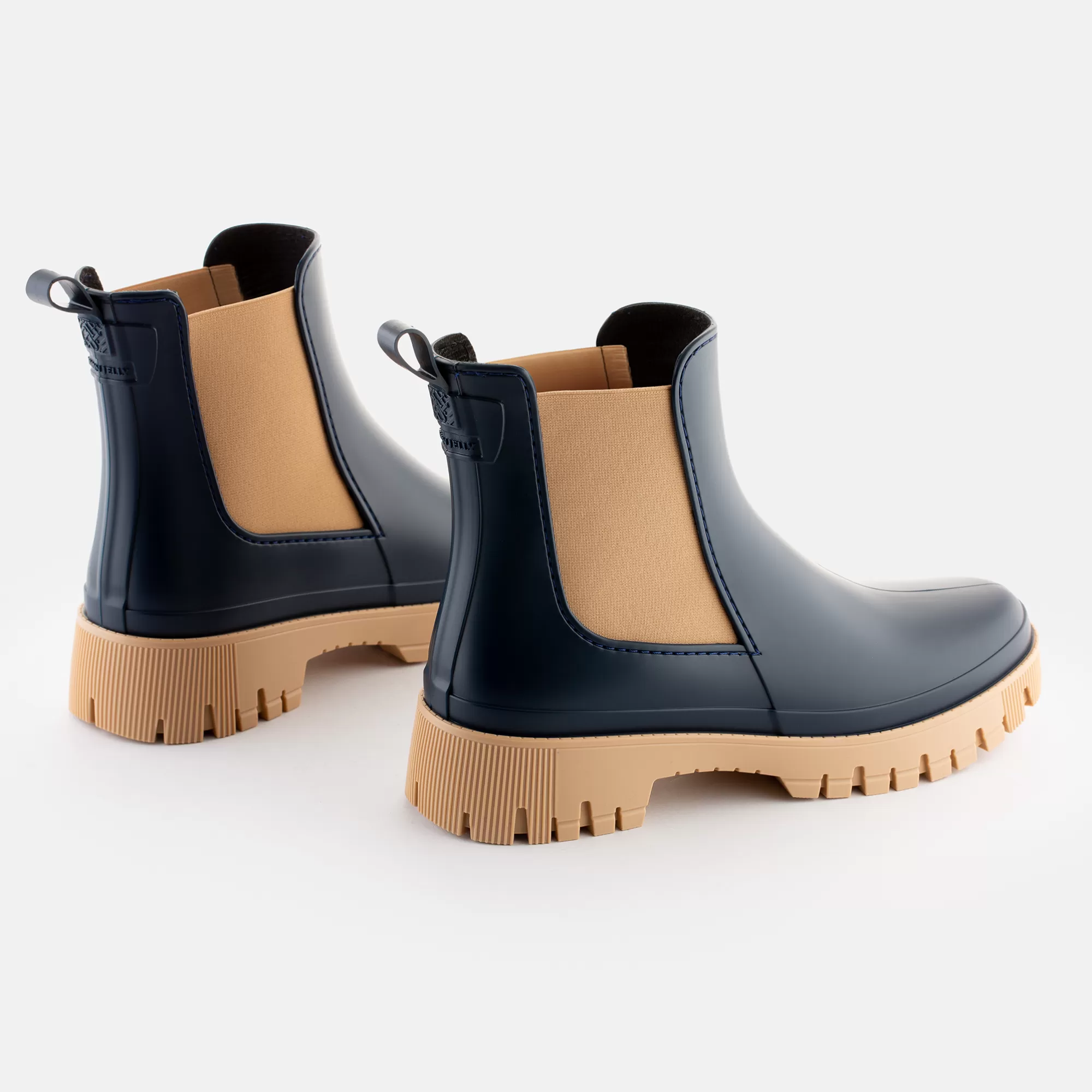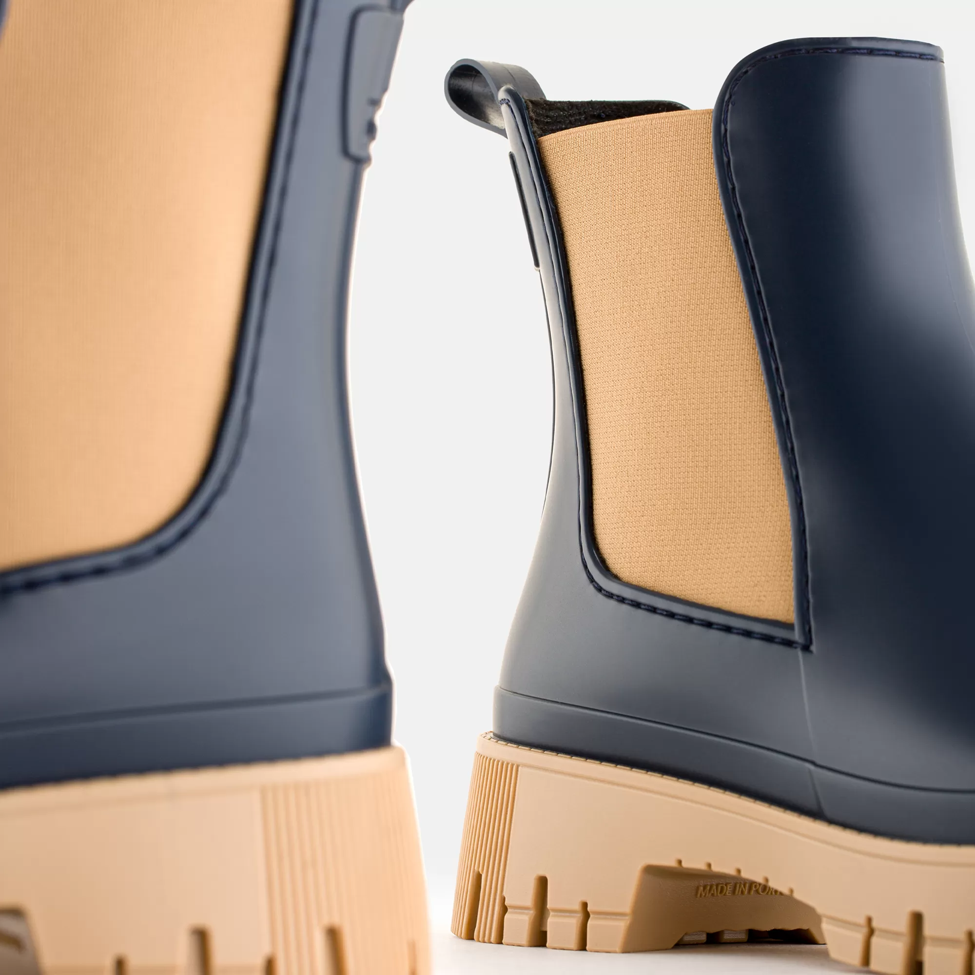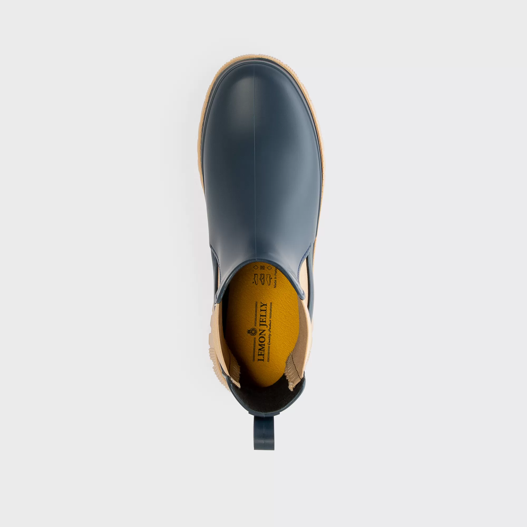 Uma Combinação Clássica De Botins Azuis Curtos Mate Com Elásticos Bege Para Uma Abordagem Intemporal De Meia-Estação. Com Um Acabamento Elegante E Uma Forma Mais Larga E Confortável, Podes Usar Estes Botins Azuis Com Vestidos Ou Calças Mais Quentes Para Quando Os Ventos Fortes Começarem A Soprar. Produzidos Em Materiais De Alta Qualidade Numa Fábrica Movida A Energia Renovável E Sem Componentes De Origem Animal. Desliza Até Ao Inverno E Deixa Os Teus Passos Com Aroma A Limão Fazerem A Sua Magia.