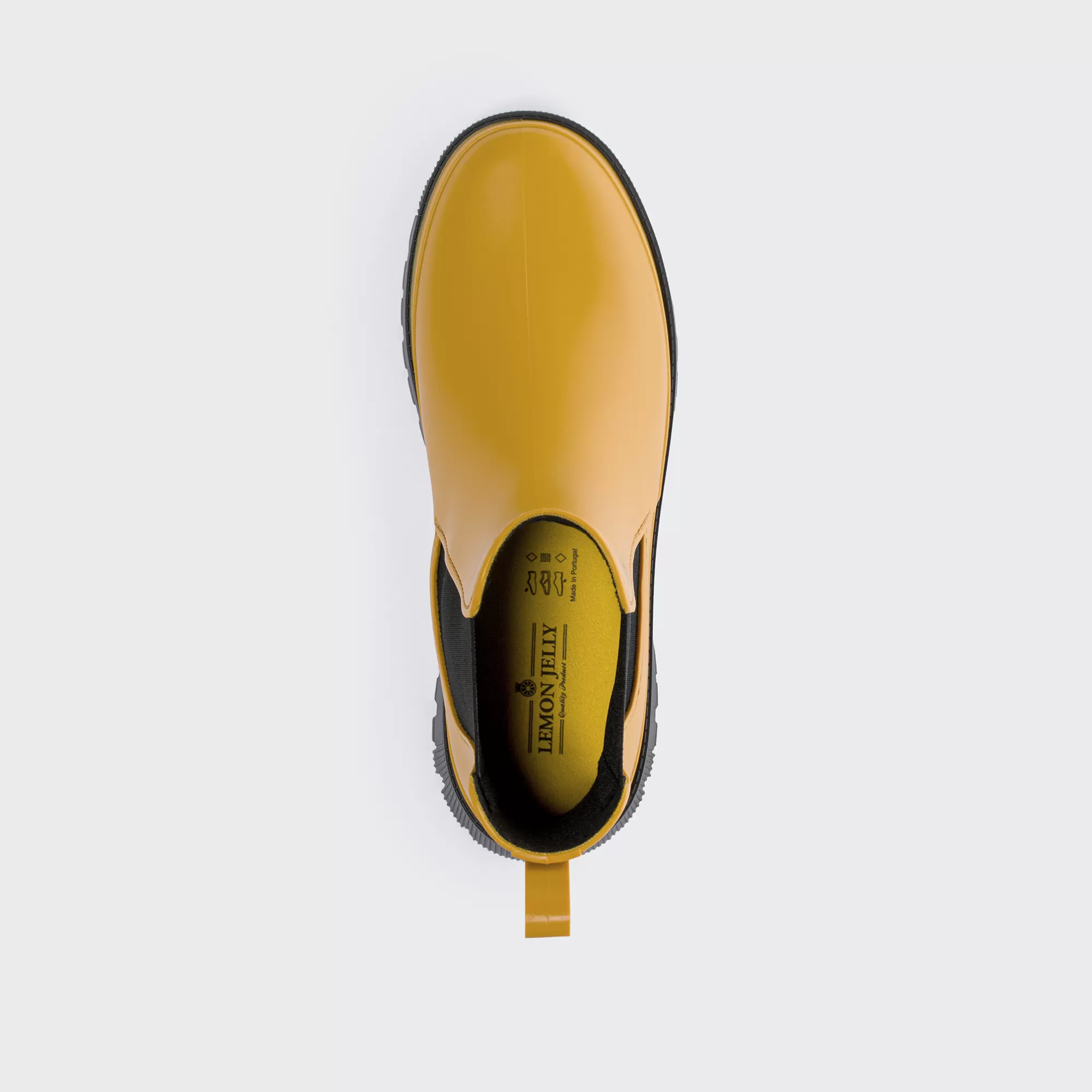 Um Forte Contraste De Cores Torna Estes Botins Amarelos Curtos Com Elásticos Pretos Uma Peça De Destaque Nos Teus Looks Outono/Inverno. Uma Forma Mais Larga Oferece Um Ajuste Equilibrado Para Uma Postura E Sensação Confortáveis. Compõe Looks Tendência Misturando Com Calções De Inverno Ou Jeans E Ousa Impressionar Até Os Mais Distraídos. Fabricados Em Portugal Com Energia Renovável, Incorporando Materiais Reciclados. Com Aroma A Limão E Selo Vegan Para O Toque Final Perfeito.